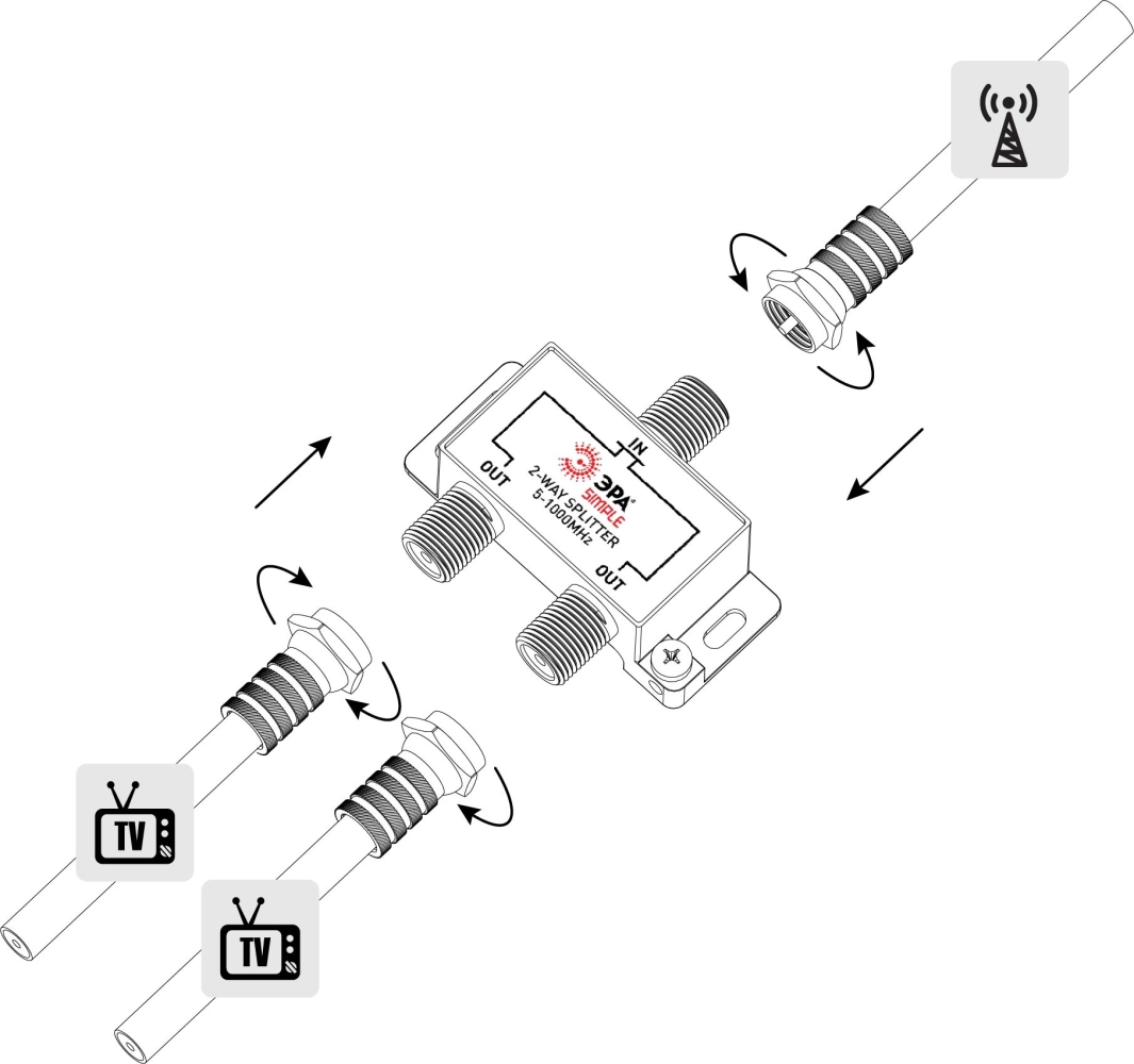 Телевизионный делитель незаменим в любой системе эфирного телевидения, а также в бытовых условиях, когда необходимо подключить к одной антенне несколько телевизоров или ресиверов. Делитель ТВ на 2 выхода под F-разъем предназначен для деления телевизионного сигнала, идущего от антенны к оборудованию, равномерно на число выходов. Данный ТВ сплиттер рассчитан под F разъём и имеет два выхода, т. е. сигнал, проходящий через сплиттер, делится пополам. Кабель подключается к этому делителю с помощью F-разъемов. Делитель подходит для сигналов, имеющих диапазон частот 5-1000 МГц, что соответствует эфирному телевидению. Делитель ТВ на 2 выхода под F разъём 5-1000 МГц