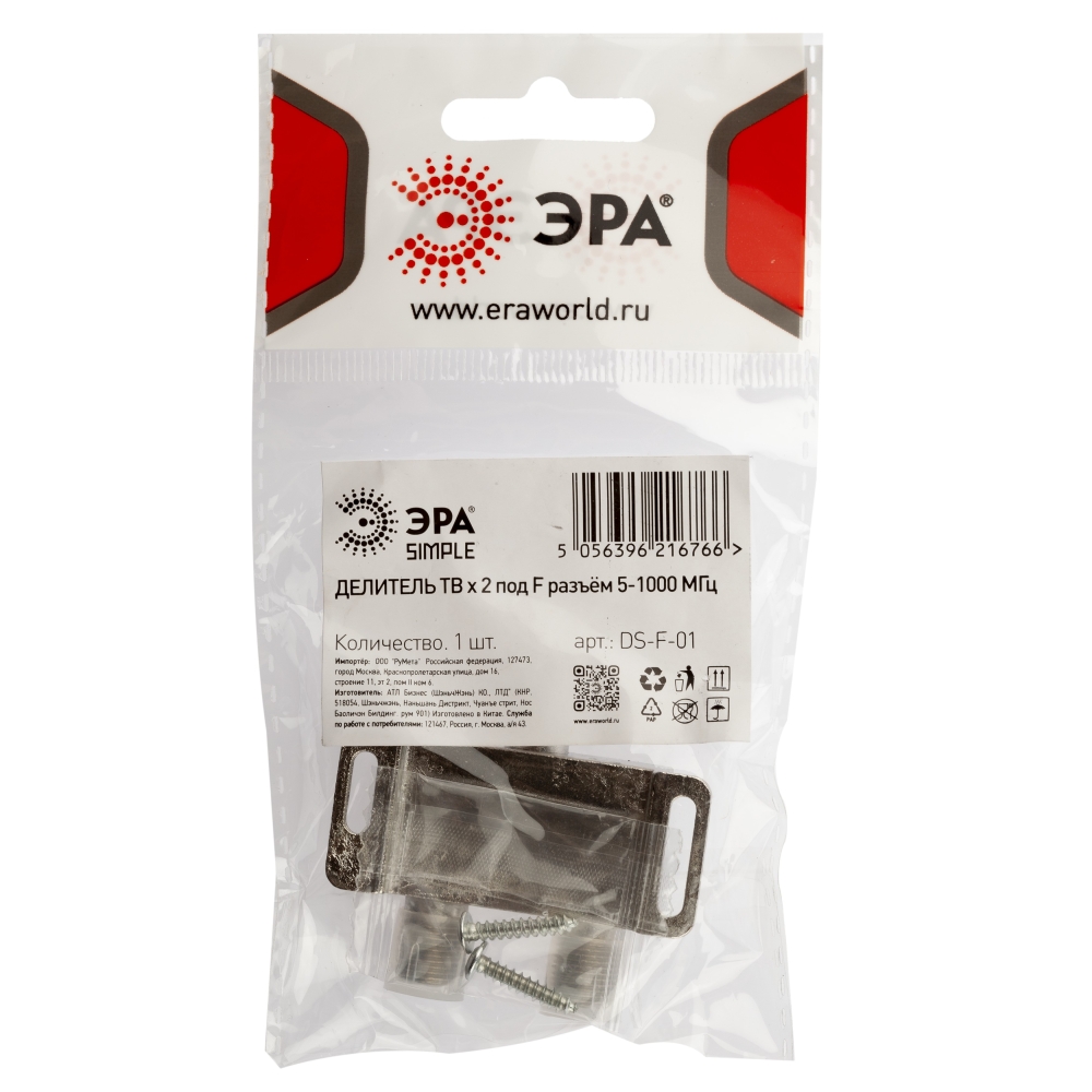 ДЕЛИТЕЛЬ ТВ х 2 под F разъём 5-1000 МГц ЭРА Simple DS-F-01