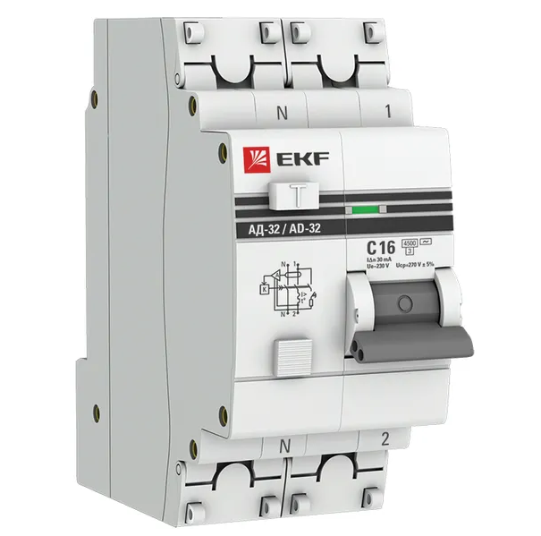 Диф.автомат PROXIMA АД-32 1P+N 16А/30мА (хар. C, AC, электрон.,защита 270В) 4,5кА EKF