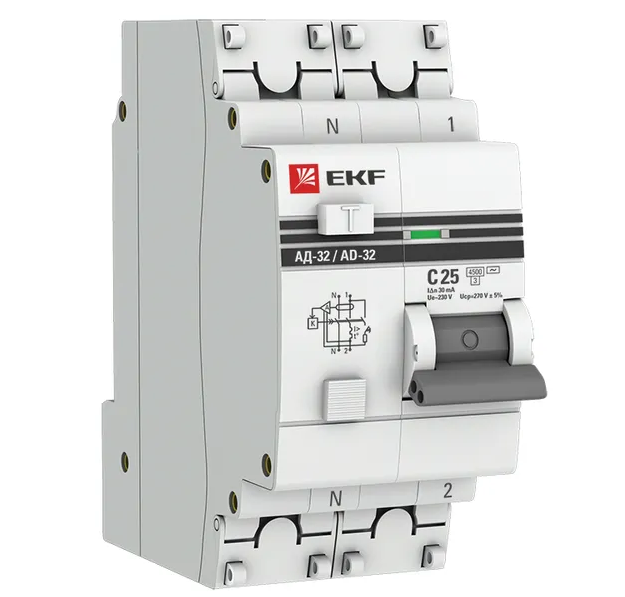 Диф.автомат PROXIMA АД-32 1P+N 25А/30мА (хар. C, AC, электрон/,защита 270В) 4,5кА EKF