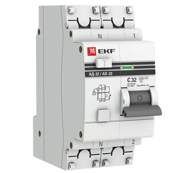 Диф.автомат PROXIMA АД-32 1P+N 32А/30мА (хар. C, AC, электрон.,защита 270В) 4,5кА EKF