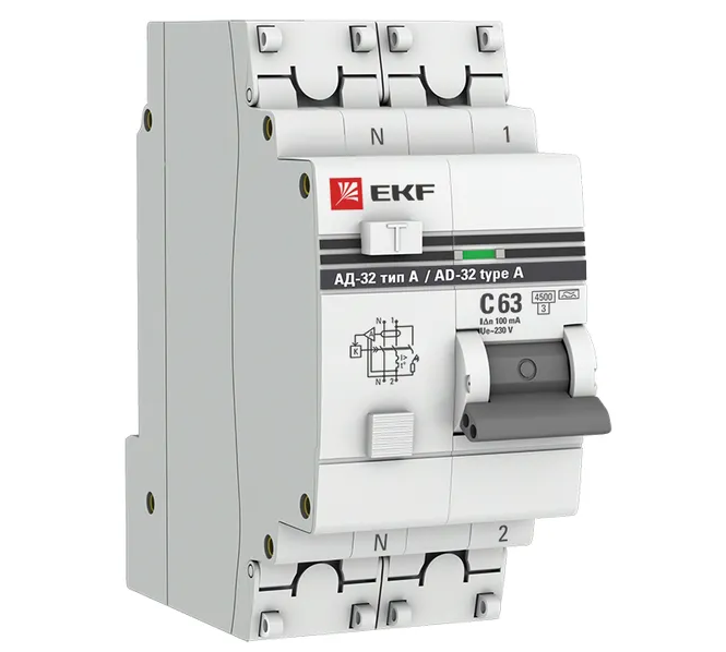 Диф.автомат PROXIMA АД-32 1P+N 63А/100мА (хар. C, A, электрон.,защита 270В) 4,5кА EKF