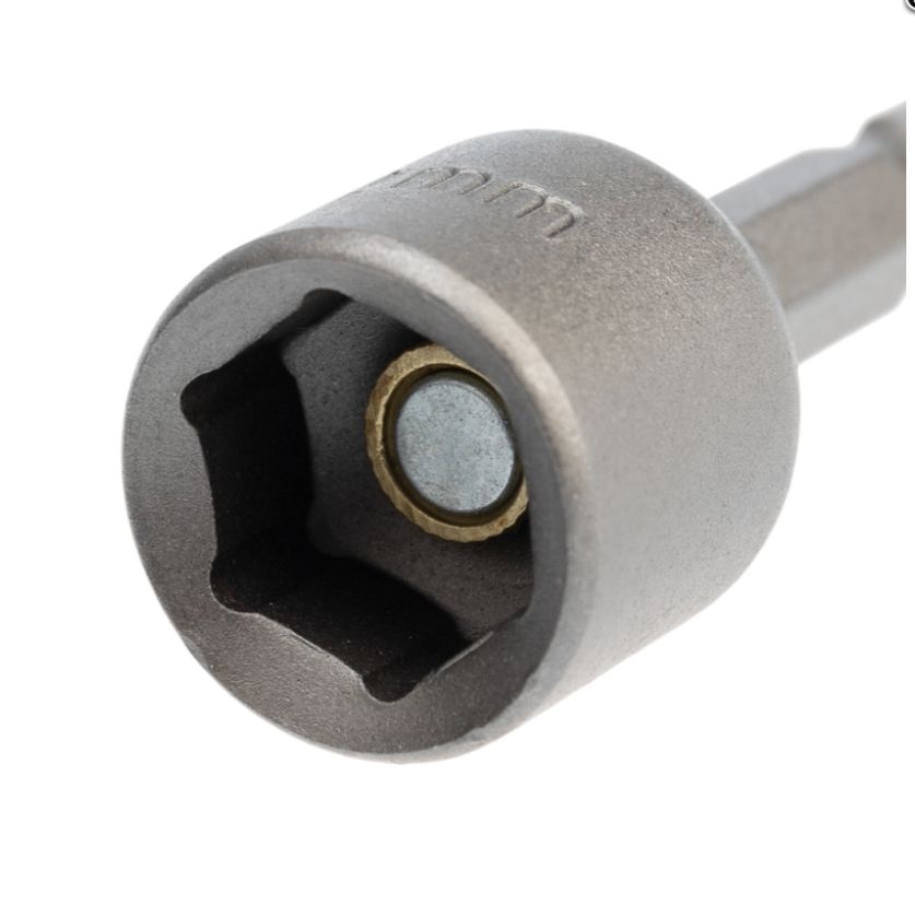 Ключ-насадка предназначен для работы с кровельными саморезами, гайками и винтами с внешним шестигранником. Используется с шуруповертом, дрелью или с отверткой-адаптером. Изготовлен из высококачественной стали CrV, благодаря чему устойчив к статическим и динамическим нагрузкам и износу. Внутрь головки ключа впрессован магнит, который надежно удерживает крепеж. Шестигранный хвостовик обеспечивает надежное закрепление ключа в патроне инструмента и не дает проворачиваться ключу. Благодаря хвостовику подойдет для установки на все виды шуруповертов и отверток-адаптеров.