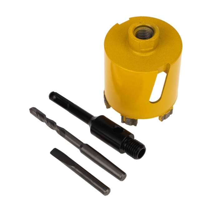 Алмазная коронка KRANZ используется для сверления отверстий в конструкциях из бетона, армированного бетона, кирпичной кладки и силикатного кирпича с помощью перфоратора. Предназначена для профессионального применения. Оптимально подходит для выполнения отверстий под розетки. Предусмотрено сухое и мокрое сверление. Водяное охлаждение продлевает срок службы инструмента. Коронка оснащена хвостовиком SDS PLUS. Рабочая часть состоит из 5 режущих сегментов высотой 10 мм.Предназначена для работы в режиме безударного сверления, что обеспечивает аккуратность отверстий и уменьшает количество пыли при работе. Рекомендуемая частота оборотов 600-900 об/мин. В комплекте поставляется центрирующее сверло. Инструмент имеет долгий срок службы и сохраняет свои режущие свойства на протяжении всего периода эксплуатации.