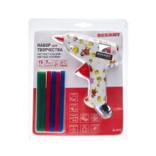 Пистолет клеевой REXANT 15Вт Ø 7 мм малый + набор цветных стержней 12 шт. (блистер) 1/48