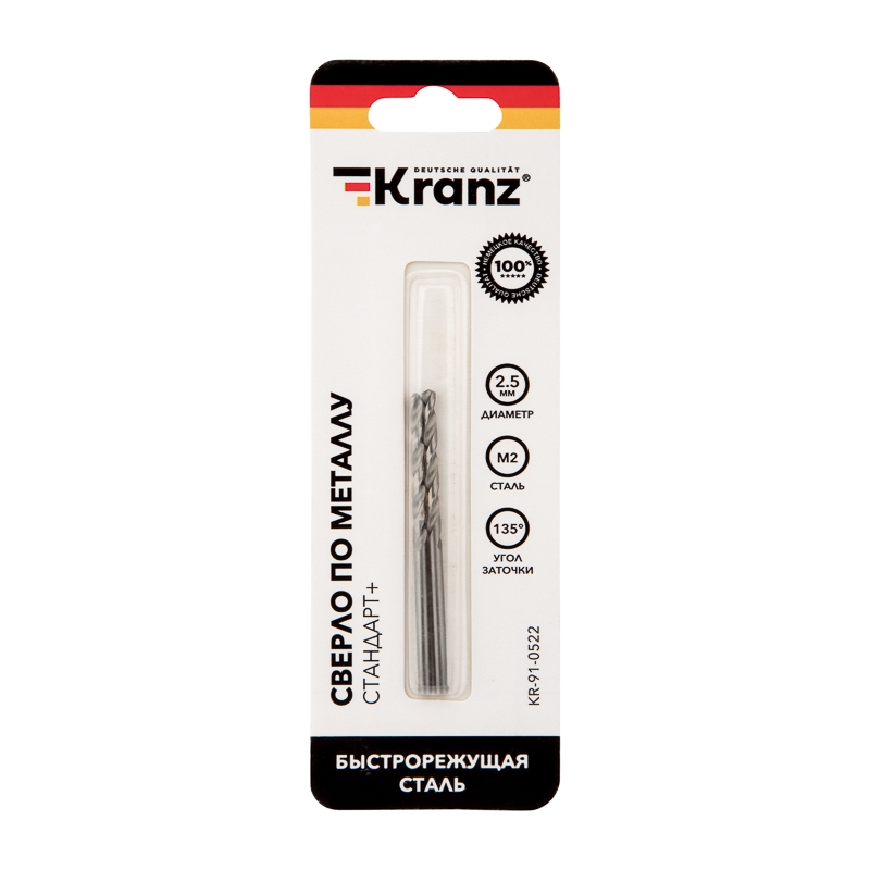 Сверло по металлу KRANZ изготовлено по стандарту DIN 338 и используется для сверления отверстий в таких материалах, как сталь, чугун, нержавеющая сталь, цветные металлы и пластик. Применяется совместно с дрелями, шуруповертами и станками с цилиндрическим типом крепления.