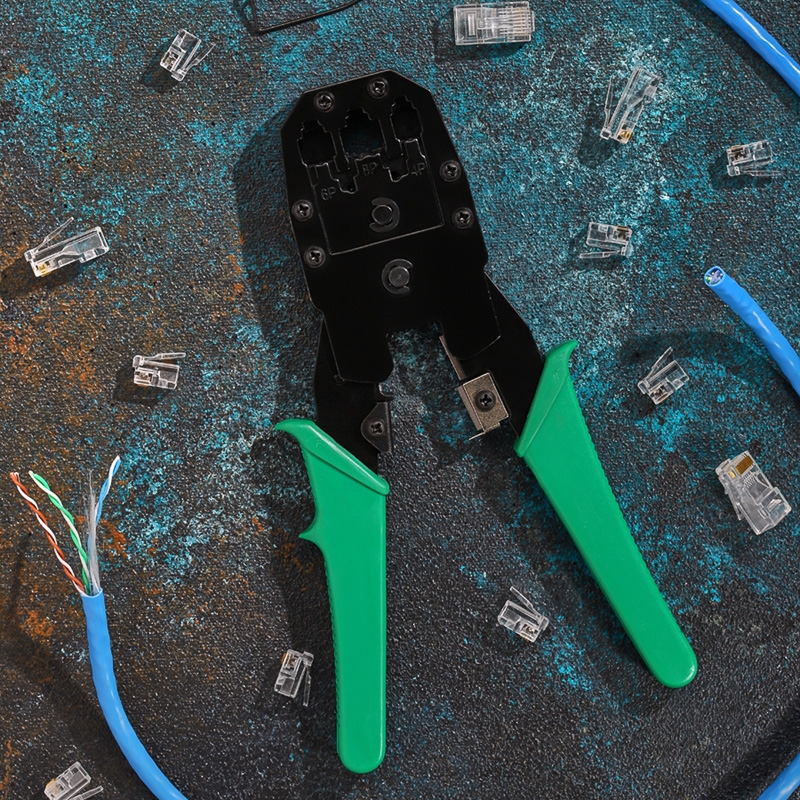Кримпер для обжима ht-200 — универсальный инструмент, предназначен для обжима разъемов RJ-45 (8P8C), RJ-12 (6P6C), RJ-11 (6P4C и 6P2C) и RJ-10 (4P4C), а также для снятия изоляции как с плоских, так и круглых кабелей и обрезки проводов.