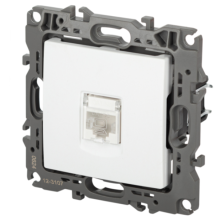 Розетка информационная RJ45 серии Эра 12 скрытой установки механизм цвет белый матовый 12-3107-01М. Сделана из поликарбоната. Монтаж в подрозетник производится и на лапки, и на винты. Рамки приобретаются отдельно