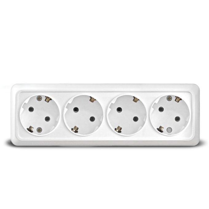 Universal ОЛИМП Розетка 4м горизонтальная с/з, 16А, ОУ, БЕЛЫЙ 3/60