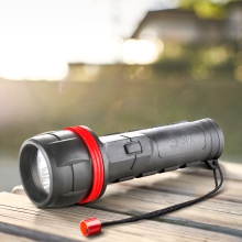 Универсальный фонарь R2D оснащён мощными светодиодами, который светят ровным белым светом. Дальность луча составляет 74 метра. Противоскользящий обрезиненный корпус обеспечивает достаточную ударопрочность и влагозащиту. Такой фонарь станет отличным помощником в походе, на рыбалке или даже в городских условиях. Фонарь портативный, его удобно рать с собой, в комплекте с фонарём страховочный ремешок на запястье.Фонарь питается от двух батареек, что позволяет не зависеть от наличия розетки. Три белых светодиода обеспечивают яркий и мощный луч света. Это практичный и надёжный инструмент для  повседневных задач. Благодаря резиновому корпусу можно не волноваться повредить фонарь в падении, а эргономичная ручка оснащена противоскользящими элементами. Фонарь удобно лежит в руке и лёгкий по весу.  Фонарь энергоэффективный, то есть может светить ровным светом без бликов достаточно длительное время без замены батареек.  К неоспоримым достоинствам  фонаря R2D можно отнести: низкое энерогопотребление, крепкий и ударопрочный корпус, небольшой вес и габариты, удобный в использовании, большой срок службы и качественный свет.