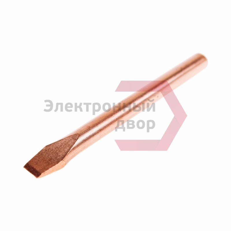 Жало медное представляет собой цилиндрический стержень, имеющий с одного конца один из множества типов форм. Медь — это идеальный материал для изготовления паяльного жала с точки зрения теплопроводности. Кроме этого, медное жало имеет отличную теплоемкость. Подавляющее большинство паяльников комплектуются именно такими наконечниками.  Основные характеристики: Тип жала: клин ...