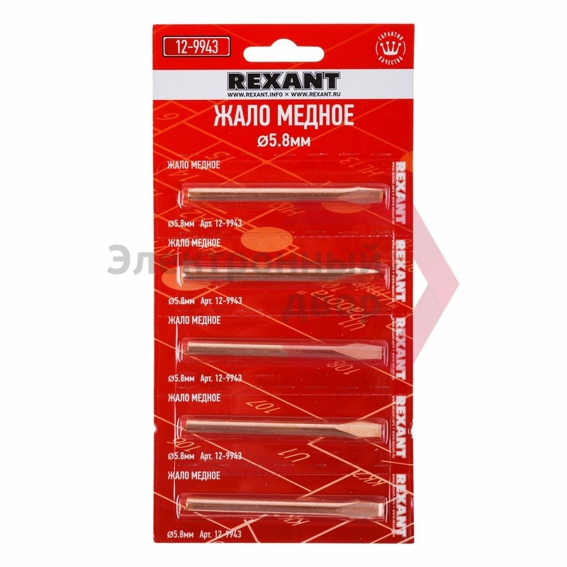 Жало медное REXANT Ø5.8 для паяльников ЭПСН, 65Вт, тип:отрывные 5/400