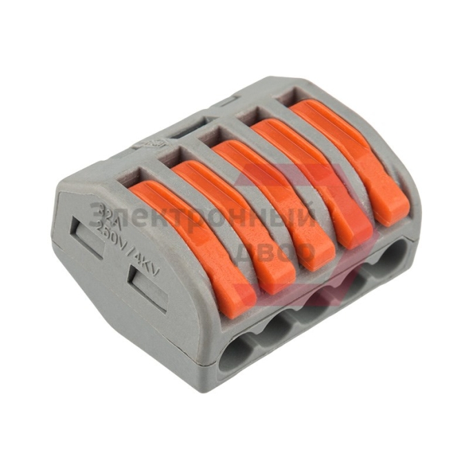 Соединительная многоразовая клемма REXANT на 5 проводников с плоско-пружинным зажимом предназначена для подсоединения медных одножильных и многожильных зачищенных проводников тонкого сечения.