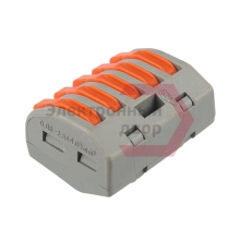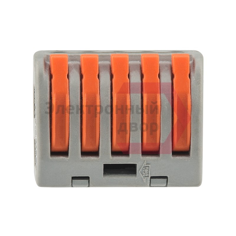 Клемма СМК с рычаг. 5 отвер.REXANT 0,08-2,5/4 мм² (40 шт./уп.) серая 40/1600