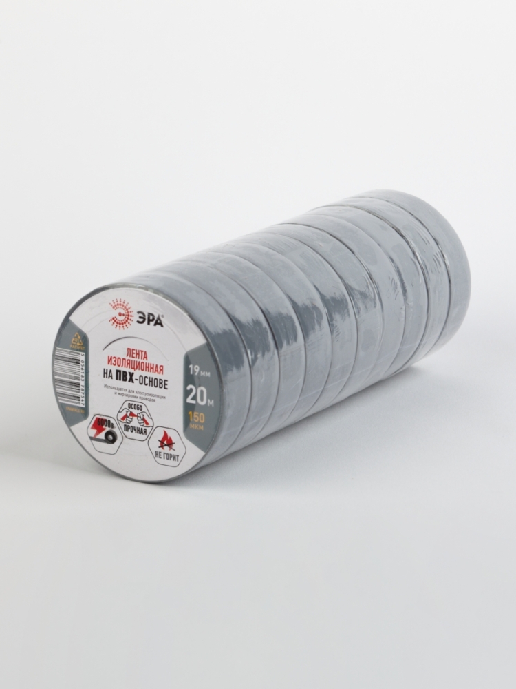 Изолента ПВХ 'ЭРА' 19мм*20м Серая/10/200