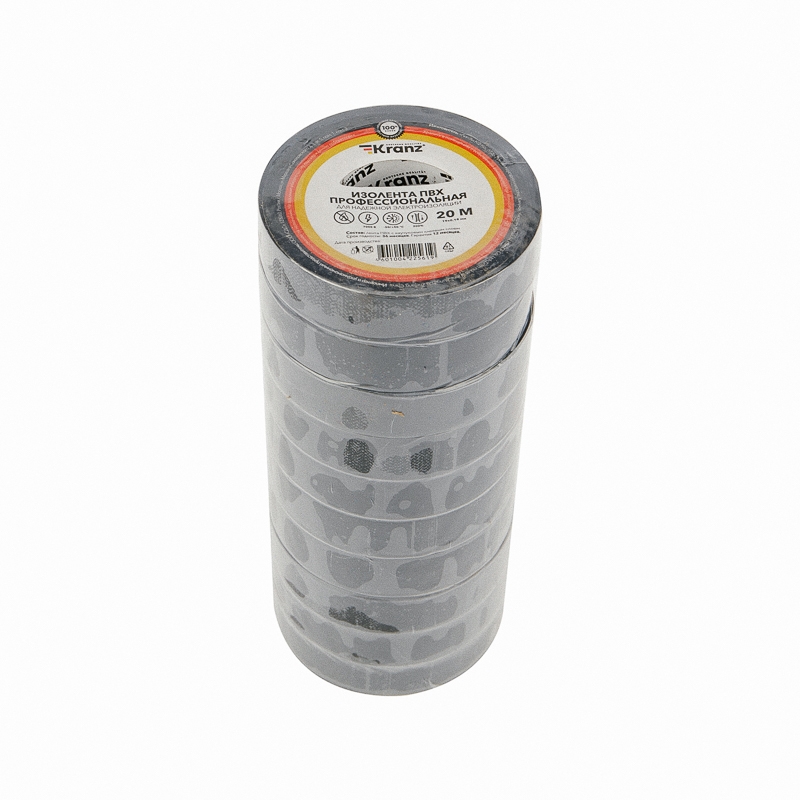 Изолента ПВХ KRANZ профессиональная 0,18х19мм*20м, черная