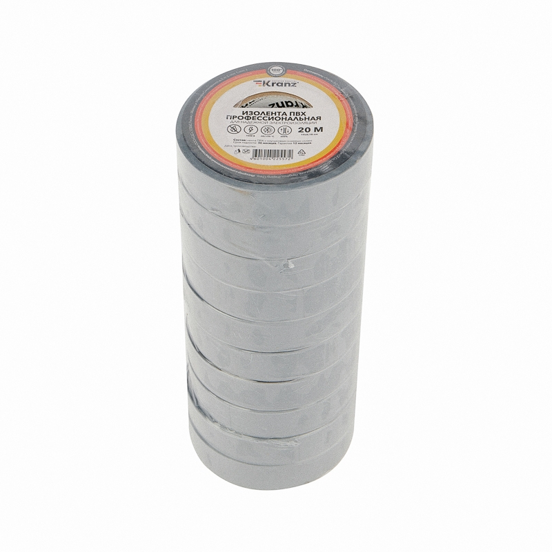 Изолента ПВХ KRANZ профессиональная 0,18х19мм*20м, серая