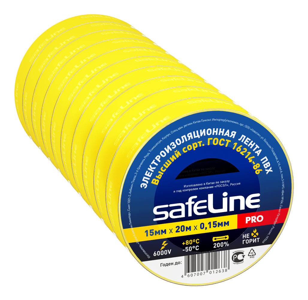 Изоляционная лента Safeline серии PRO предназначена для проведения электромонтажных работ и рекомендуется для профессионального и бытового применения. Толщина ленты 0,15мм. Каждый размер выпускается в 8-ми цветах