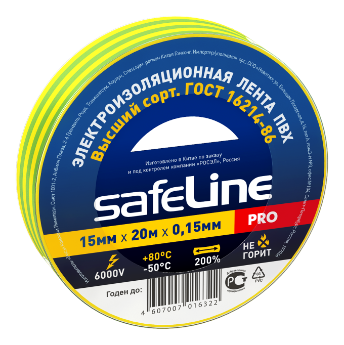 Изоляционная лента Safeline серии PRO предназначена для проведения электромонтажных работ и рекомендуется для профессионального и бытового применения. Толщина ленты 0,15мм. Каждый размер выпускается в 8-ми цветах