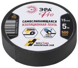 Изолента самослипающаяся ПВХ 'ЭРА' PRO 15мм*5м Черная