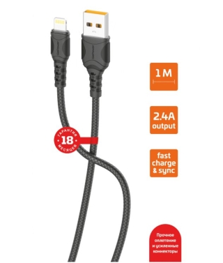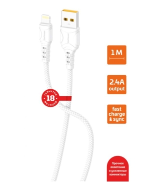 Длина: 1м Внешняя оплетка: Силикон Поверхность разъема: TPE, двустороннее литье под давлением Жильный провод: 43x0.08x2С + 10x0,08x2C; медь высокой очистки Разъем: Два концевых медных штифта с позолотой, 24 - часовой тест солевым туманом Максимальный ток: 2,4А Поддержка: Зарядка и синхронизация Коннектор 1: USB (m) Коннектор 2: Lightning (m) Модель: GP21L