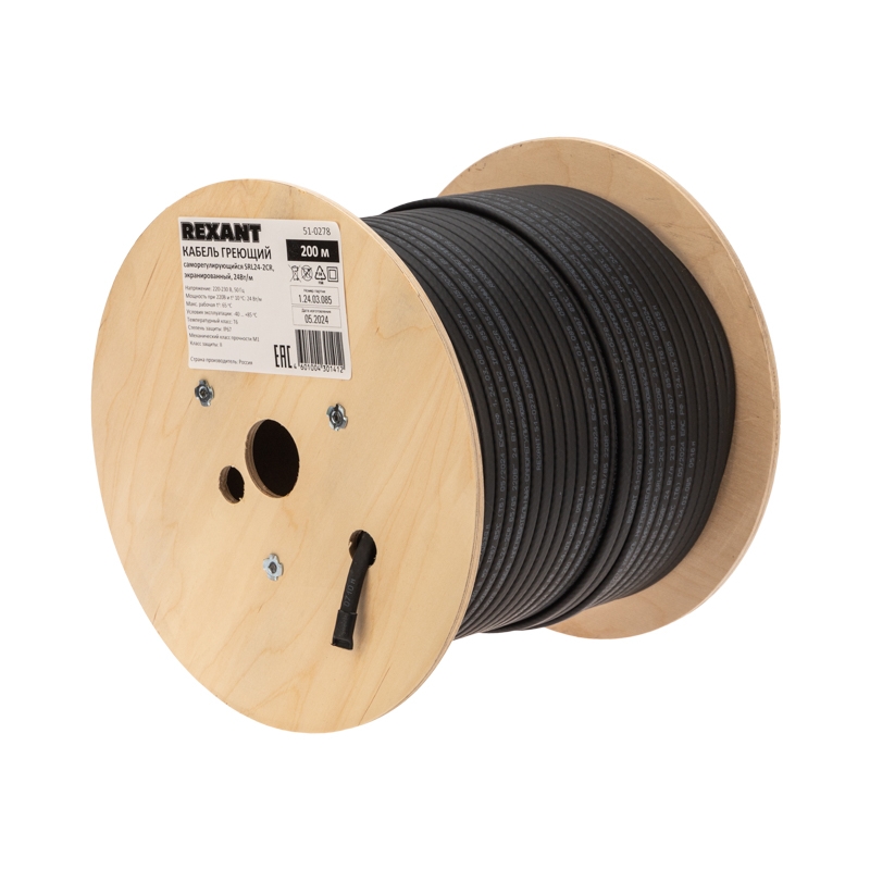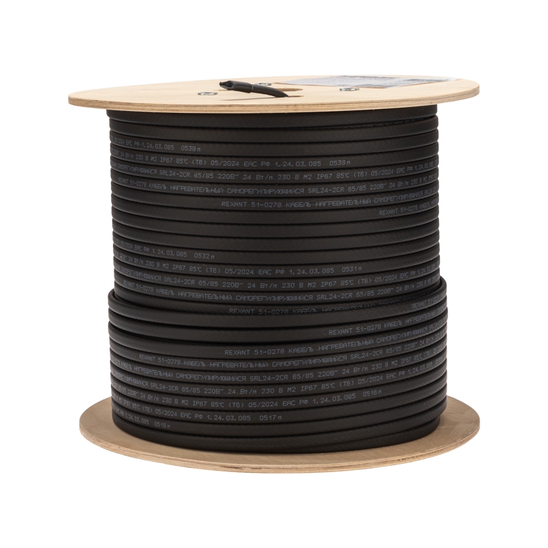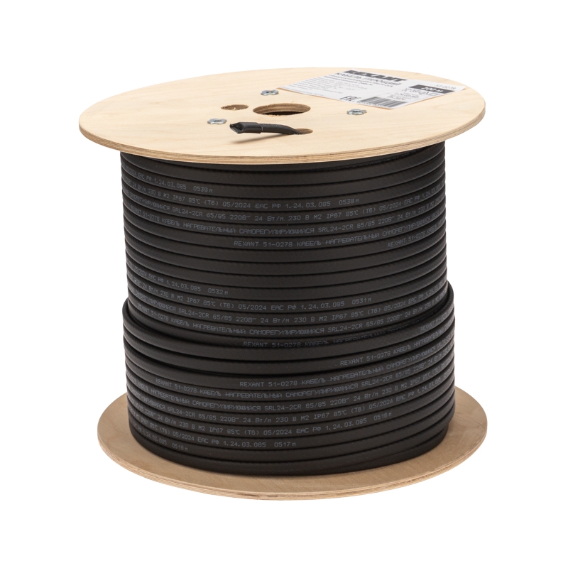 Кабель греющий саморегулирующийся экранированный SRL24-2CR 24Вт/м, 0,9мм2/70м, 200м (50,30) REXANT