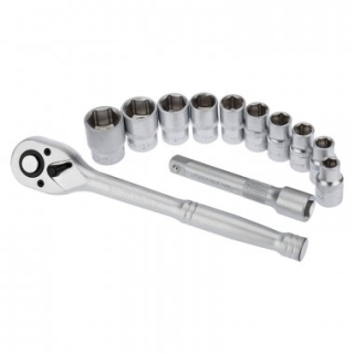 Применение: Монтаж/демонтаж резьбовых соединений Температура эксплуатации: -40...40 °C Ширина изделия: 32,0000 см Высота изделия: 5,0000 см Длина изделия: 11,5000 см Марка стали: Хром-ванадиевая сталь (Cr-V) Упаковка: Кейс Покрытие: Хромоникель Тип: Универсальный Количество граней: 6,0000 штук Количество головок в наборе: 10,0000 штук Общее количество предметов: 12,0000 штук Ключ трещотка: Да Твердость рабочей части: 42,0000 HRC Минимальный размер головки: 10,0000 мм Максимальный размер головки: 24,0000 мм Удлинитель: Да Присоединительный размер: 1/2 Вес: 2.0203 кг