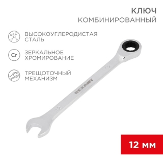 Комбинированный трещоточный ключ REXANT представляет собой инструмент с рожковым профилем с одной стороны и накидным профилем с трещоточным механизмом – с другой. Предназначен для монтажа и демонтажа...