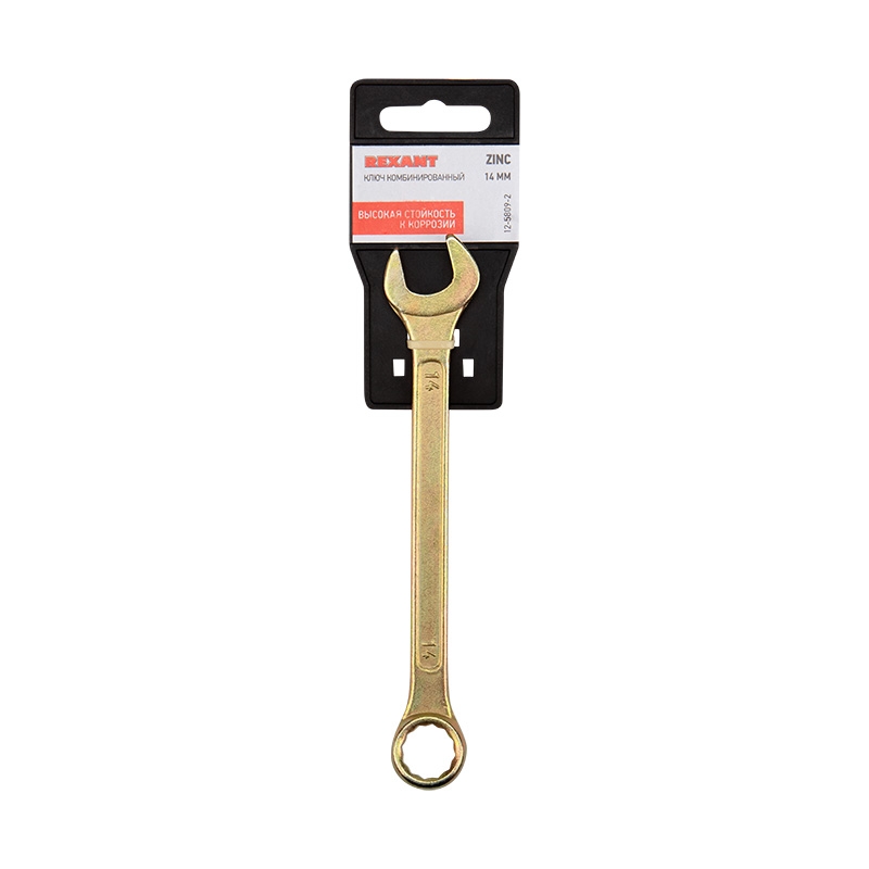Ключ гаечный комбинированный 14 мм REXANT, желтый цинк 1/160