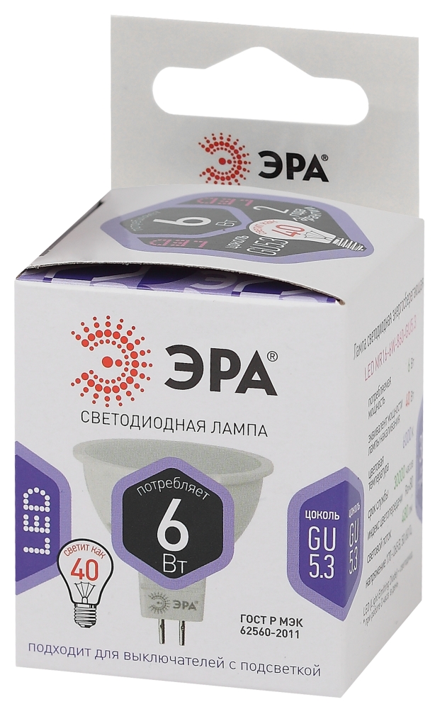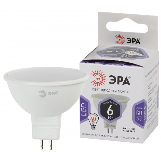 Лампа ЭРА LED MR16-GU5,3-6W-860 (холодный)