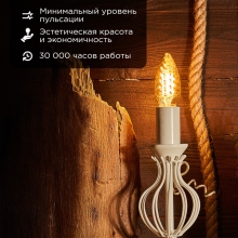 Филаментная лампа мощностью 7,5Вт с цоколь Е14 обладает вытянутой колбой с витой поверхностью стекла. Используется для освещения комнат, домов, гостиниц, кафе, и других объектов.Благодаря необычному дизайну и золотому цвету колбы особенно подходит для открытых светильников, абажуров, плафонов и т.д. Использование таких ламп в интерьере способствует созданию уюта и комфорта. Характеризуется хорошим отведением тепла, долговечностью, экологичностью, упрощенной утилизацией и высоким качеством. Отличается высокой энергоэффективностью и долгим сроком службы.