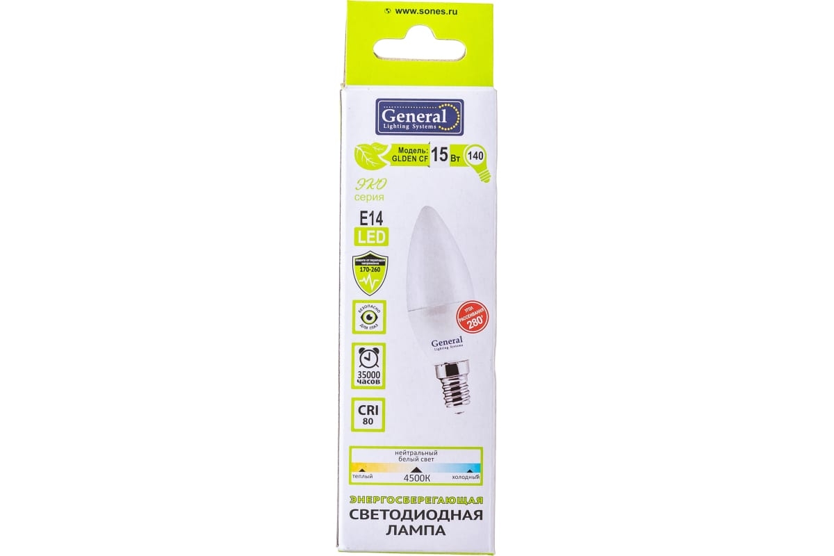 Лампа General LED-CF 15Вт E14 4500К свеча матовая 1050лм (10/100)