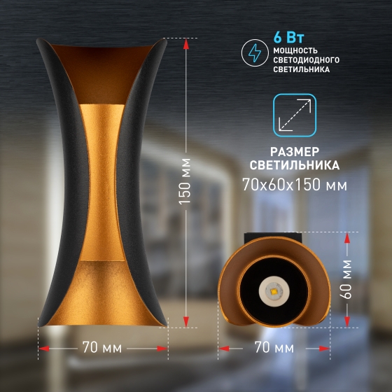 Бра на стену ЭРА WL42 BK+GD представляет собой стильное и функциональное декоративное освещение со встроенными светодиодами. Мощность настенного светильника составляет 6 Вт. Цветовая температура 3500K соответствует теплому белому свету, создавая уютную атмосферу. Степень защиты IP54 гарантирует безопасность использования прибора в помещениях с повышенной влажностью. Благодаря алюминиевому корпусу и универсальным креплениям, данную подсветку можно установить на различные поверхности, такие как бетонные, кирпичные, деревянные или гипсокартонные. В комплекте идут крепления, которые помогут легко и быстро установить осветительный прибор на стене.
