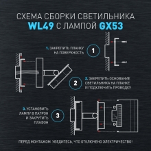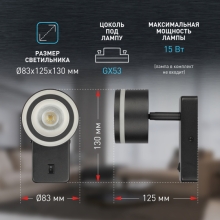 Светильник декоративный настенный WL49 BK предназначен для освещения помещений изнутри, таких как прихожая, столовая, гостинная, спальня. Поворотный механизм позволяет направить свет в необходимом направлении в одной плоскости. Цоколь GX53, напряжение питания ~230В 50/60Гц, материал металл, пластик, цвет светильника черный, размер 83*125*130мм, максимальная мощность 15Вт, степень защиты IP20