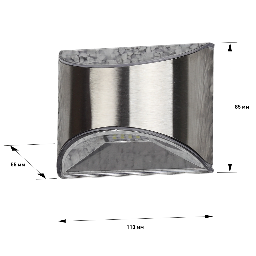 Светильник функционирует на солнечной батарее. Данный способ получения энергии является наиболее экологичным, энергоемким, а также бесшумным. Питание происходит в светлое время суток. С наступлением темноты подсветка "Хром" загорается. Цветовая температура в 8000 К заливает пространство холодным белым светом и создает особый антураж. Стильный дизайн отлично впишется как в классический, так и в современный фасад.