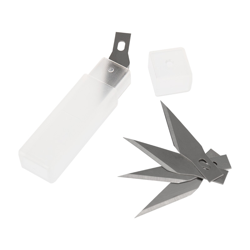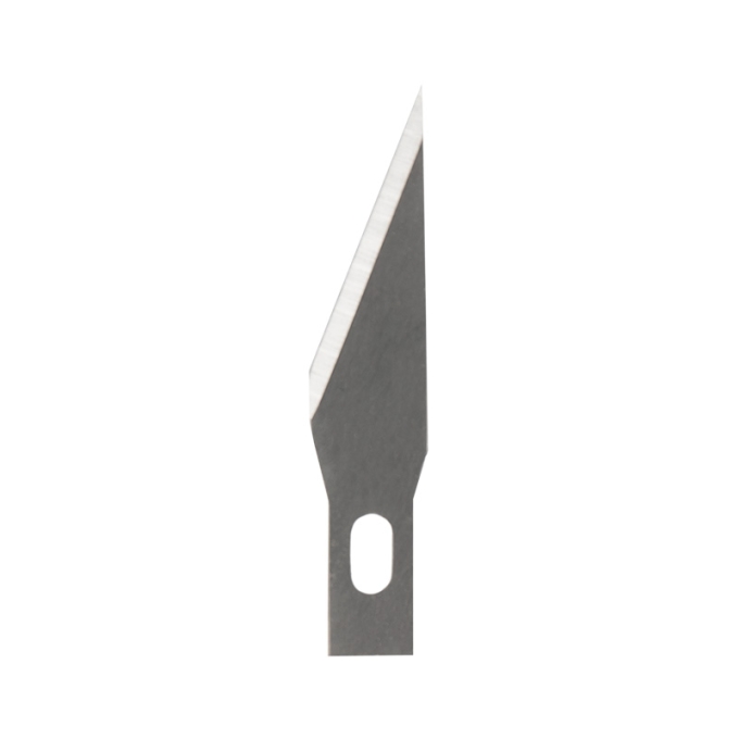 Комплект сменных лезвий для ножей. Применяется для фигурного вырезания, аппликаций, разрезания бумаги, пленок, обоев, кожи и других видов работ. Рекомендуется для использования в качестве сменного лезвия с ножами для художественных работ.Лезвия изготовлены из высококачественной инструментальной стали. Обладают высоким качеством и острой режущей кромкой.Длина лезвия – 25 мм, ширина – 5 мм, толщина – 0,5 мм.
