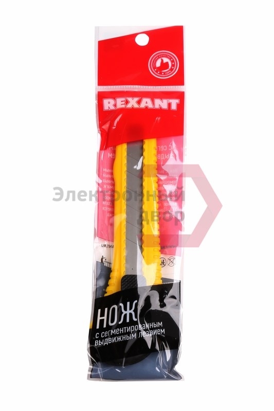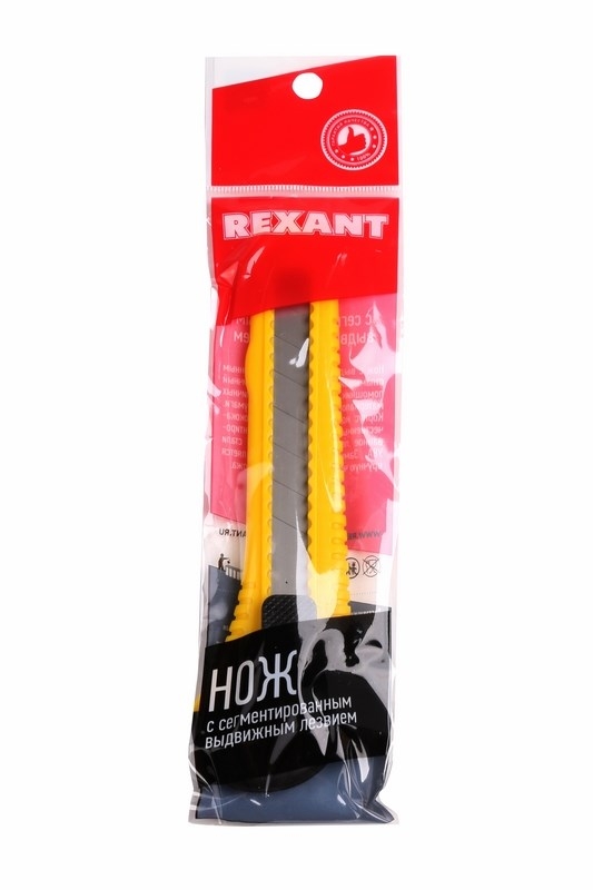 Нож REXANT с выдвижным сегментированным отламывающимся лезвием — отличный помощник для разрезания различных материалов: пластика, картона, бумаги.