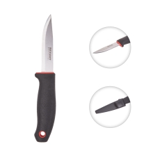 Нож укомплектован пластиковыми ножнами для удобного хранения и безопасной транспортировки. На корпусе чехла предусмотрена клипса-зажим, которая позволяет закреплять инструмент на одежде.