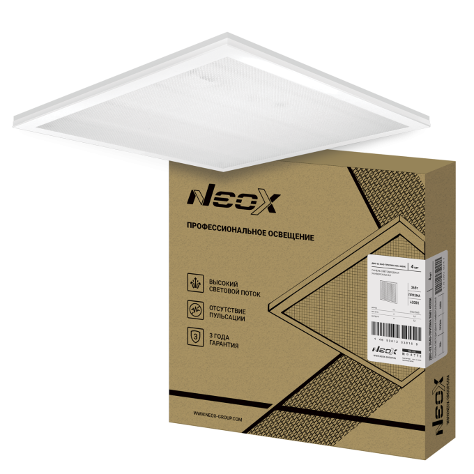 Светильник LED NEOX ДВО-02 36Вт ПРИЗМА 4000К 3800Лм 595х595х19мм IP40 универс.
