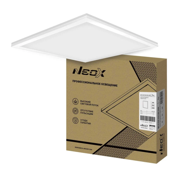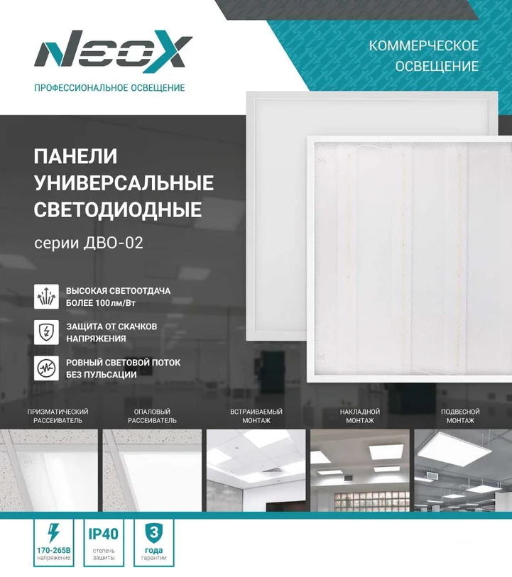 Светильник LED NEOX ДВО-02 40Вт ОПАЛ 6500К 3600Лм 595х595х25мм IP40 универс.