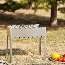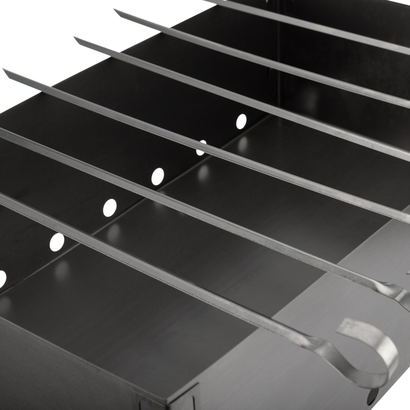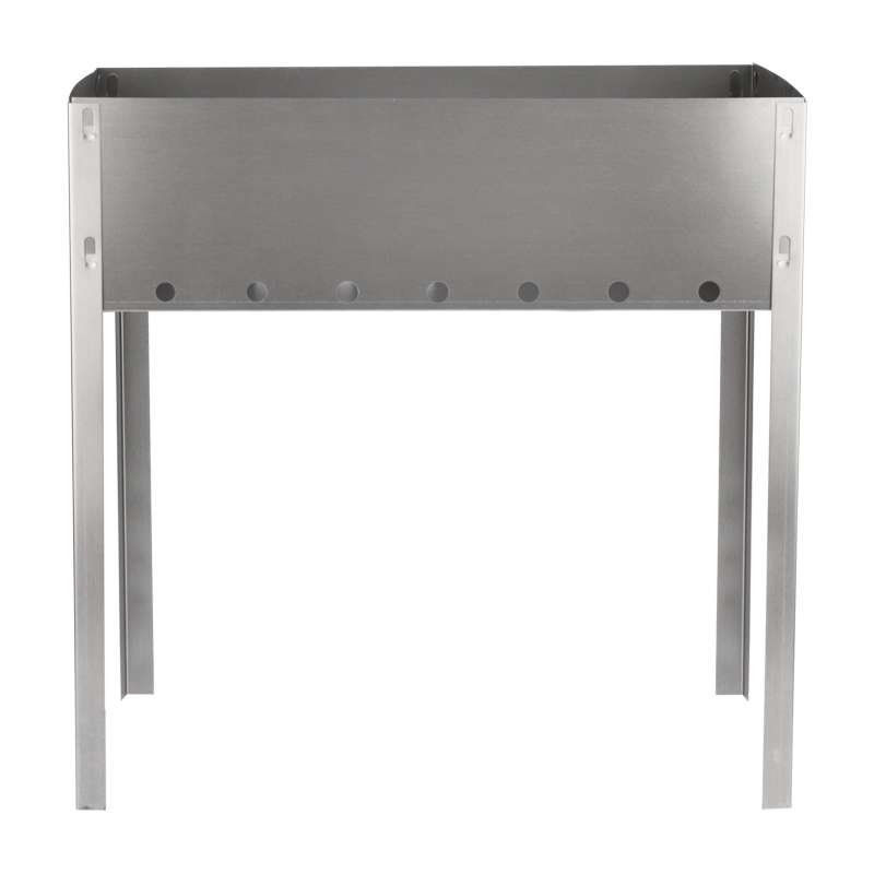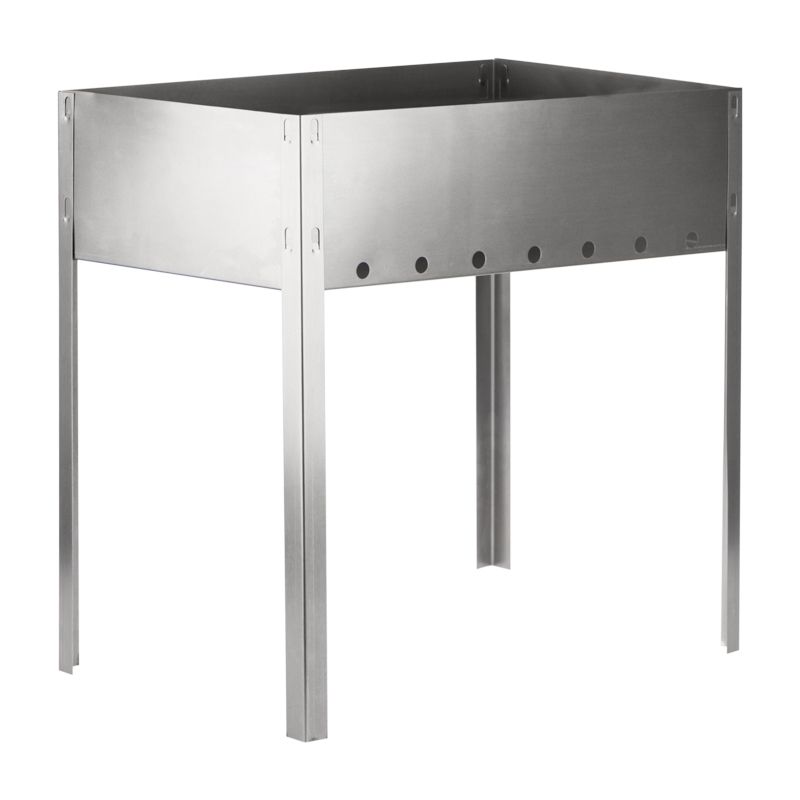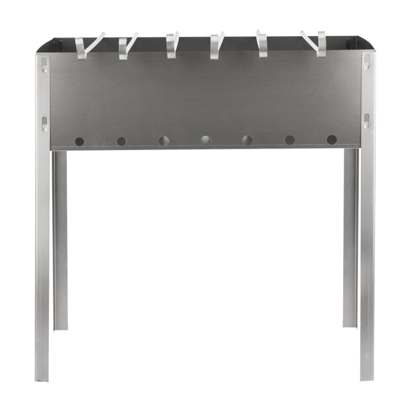 Общая высота ножек 40 см оптимальна и удобна для приготовления шашлыков. Размеры жаровни 40х25 см позволяют разместить шампуры и получить порцию блюда, рассчитанную на небольшую компанию. Толщина стенки – 0,5 мм.