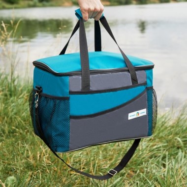 Термосумка представляет собой дорожный аксессуар, который позволяет сохранять температуру продуктов в течение длительного времени. С внешней стороны сумка покрыта прочной и влагостойкой тканью оксфорд 600 с ПВХ, а с внутренней стороны – фольгированным материалом, обладающим высокими теплоизоляционными свойствами. Материал утеплителя - изолон.Толщина стенки в 8 мм и 2 слоя утепления увеличивают время сохранения холода/тепла. Внутри располагается специальный карман для аккумулятора холода.Сумка оснащена прочным ремнем и ручками, за счет чего ее комфортно и удобно носить как на плече, так и в руках. На задней стенке предусмотрена липучка.Три внешних кармана обеспечивают дополнительное место для хранения различных предметов, таких как ложки, вилки, небольшие упаковки приправ или другие аксессуары.Изделие имеет жесткий каркас. Объем внутреннего отсека – 20 литров. Внешние размеры (ШхВхГ) – 38х26х25 см. Внутренние размеры (ШхВхГ) – 37,2х25,2х24,2 см.
