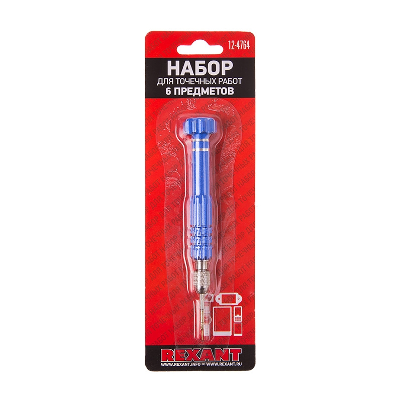 Набор отверток REXANT 6 в 1 оптимален для выполнения прецизионных работ в электронике и электромеханике, ремонта большинства видов и моделей популярной портативной техники: смартфонов, часов, планшетных ПК, игровых приставок, фотокамер, электронных сигарет. Комплект пригодится для ремонта техники Apple. Инструменты выполнены из качественной стали, обладающей высокой прочностью к механическим повреждениям и образованию ржавчины. Отвертка эргономичной формы обладает противоскользящей рукояткой и вращающейся шляпкой, которая позволяет упереть основание отвертки в ладонь и производить прокручивание инструмента только пальцами без постоянного перемещения руки.Цанговый зажим обеспечивает быструю замену и надежную фиксацию насадок.Внутри корпуса отвертки предусмотрено хранилище для насадок.Характеристики:TORX (шестигранная звезда): T2PHILLIPS (крестовая): PH1.2, PH1.5Pentalobe (шлиц для продукции Apple): 0.8Tri-Wing (трехлистник для iPhone7, 7 plus, Apple Watch): Y0.6Отвертка: даПосадка бит: 1/8Материал насадок: хромованадиевая стальМатериал рукоятки: алюминий