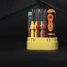 Набор отверток REXANT 10 в 1 предназначен для выполнения монтажных и демонтажных работ с резьбовыми соединениями: шурупами, саморезами и т. д. Инструменты выполнены из качественной хромованадиевой стали. Двухкомпонентная рукоятка оснащена магнитным держателем, что обеспечивает быструю замену и надежную фиксацию бит. В основании инструмента предусмотрено шестигранное отверстие: если установить в него одну из насадок, то можно получить дополнительный рычаг усилия при работе. Набор укомплектован тестером-пробником: предназначен для быстрой и эффективной диагностики электрооборудования (домашних приборов, ламп накаливания, предохранителей). Для удобства хранения и транспортировки все инструменты поставляются в пластиковом футляре. В наборе поставляются биты: SL3.0, SL6.0, PH0, PH 2, Y1, T10, ★0.8, Y2.