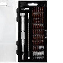 Набор отверток для точных работ KRANZ отлично подходит для ремонта телефонов, компьютеров, приемников и для многих популярных приборов, которые используются в быту. Выполнен из качественной японской стали S2, обладающей высокой прочностью к механическим повреждениям. Точно подобранные по характеристикам магнитные насадки отлично подходят как для профессионального ремонта, так и для мелких бытовых работ. В наборе 62 предмета:M2.5, M3.0, M3.5, M4.0, M4.5, M5.0 SL1.0, SL1.5, SL2.0, SL2.5, SL3.0, SL3.5, SL4.0PH000, PH00, PH0, PH1.0*2, PH1.5, PH2.0, PH2.5, PH3.5H0.9, H1.3, H1.5, H2.0, H2.5, H3.0, H3.5, H4.0, H4.5, H5.0, H6.0T2, T3, T4, T5, T6, T7, T8, T9, T10, T15, T20Triangle: 2.3Tri-wing: 2.0, 3.0Pentable 0.8, 1.2, 1.5, 2.0SQ: SQ 0, SQ 1, SQ 2 U2.6Special PH1.5РукояткаГибкий удлинительПереходники H4.0 и H6,3Посадка бит: 1,8