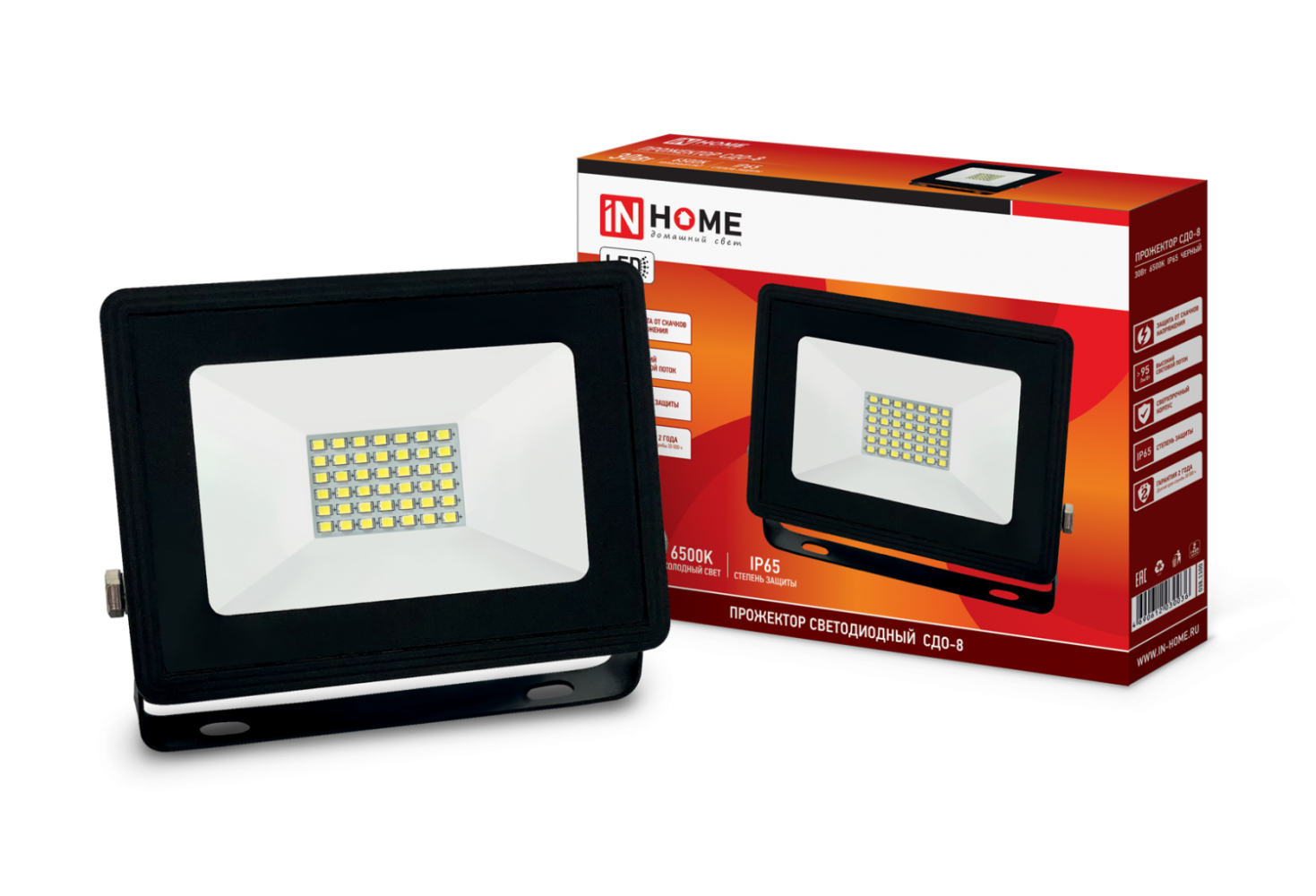 Прожектор IN HOME LED СДО-8 30Вт 230В 6500К 2850Лм IP65