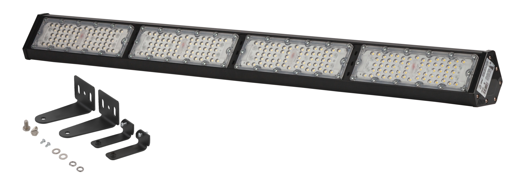 Светильник светодиодный высокомощный. Тип светильника: Замена ГСП, ЖСП, СДГ. Область применения: Предназначен для общего освещения складских и производственных помещений, в т.ч. открытых пандусов, торговых и выставочных павильонов, гипермаркетов, спортивных сооружений и т.п.. Преимущества: КСС "Г" - оптимальна для освещения складов; Коэффициент пульсации <5% - допустимо к применению в заводских цехах; 105Лм/Вт соответствует требованиям Постановления Правительства №1356. Потребляемая мощность, Вт: 200. Световой поток, Лм: 21 000. Светоотдача, Лм/Вт: 105. Цветовая температура, К: 5000K. Индекс цветопередачи, Ra: Ra>80. Степень защиты от воздействия окружающей среды, IP: IP54. Климатическое исполнение: У2. Диапазон рабочих температур: (-45+40). Тип кривой силы света: Г (140/55). Коэффициент мощности, PF: >0,95. Коэффициент пульсации светового потока, %: <5%. Материал рассеивателя: поликарбонат. Материал корпуса: Алюминий. Цвет корпуса: черный. Габариты, мм: 992х103,5х73,5. Питающее напряжение, В: 170-265. Гарантия: 3 года. Скобы продаются отдельно Б0051847.