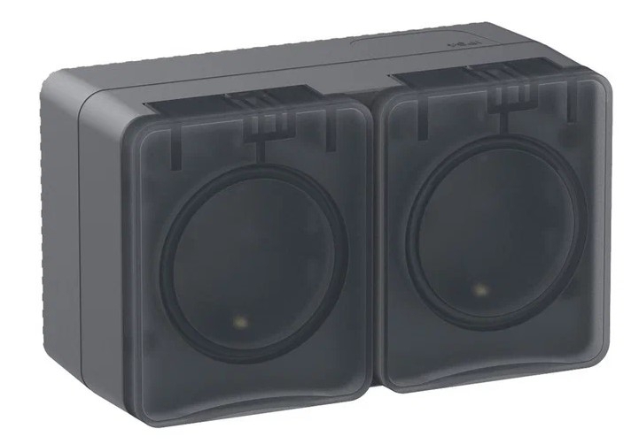 ATLASDESIGN Profi54 РОЗЕТКА 2м с/з со шторками IP54 АНТРАЦИТ