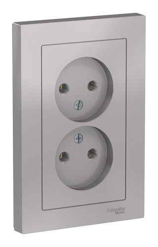 ATLASDESIGN РОЗЕТКА 2м б/з, 16А, в сборе, АЛЮМИНИЙ
