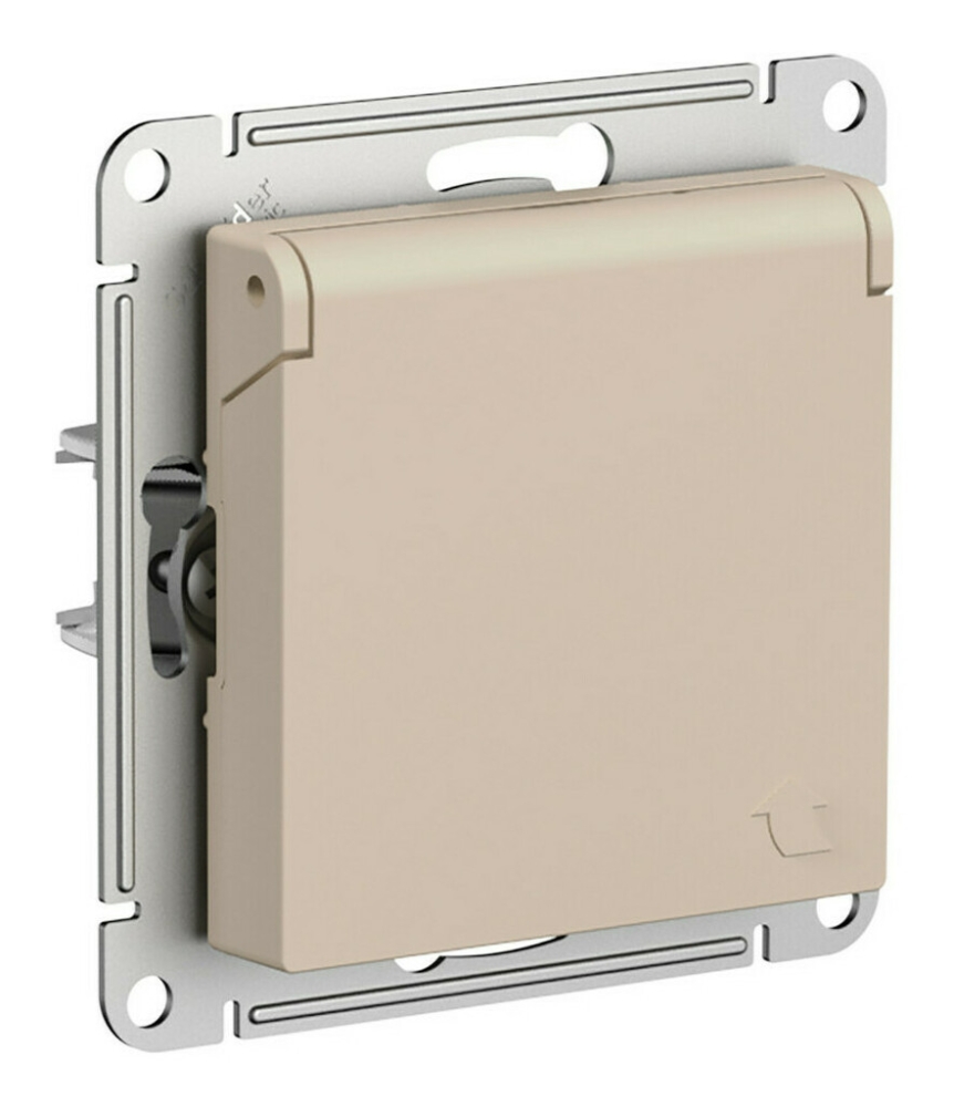 ATLASDESIGN РОЗЕТКА с/з со шторками, с крышкой, 16А, механизм, ПЕСОЧНЫЙ